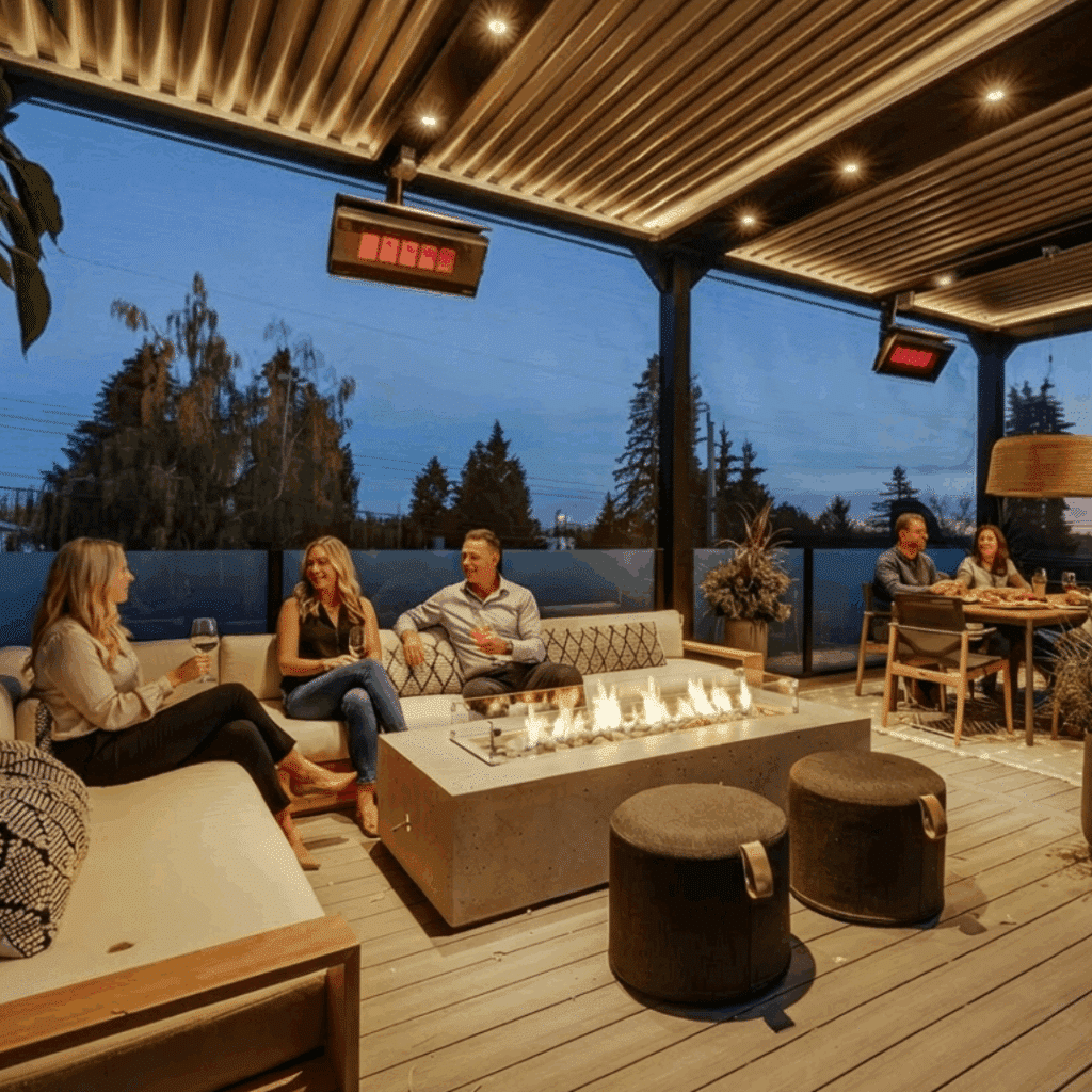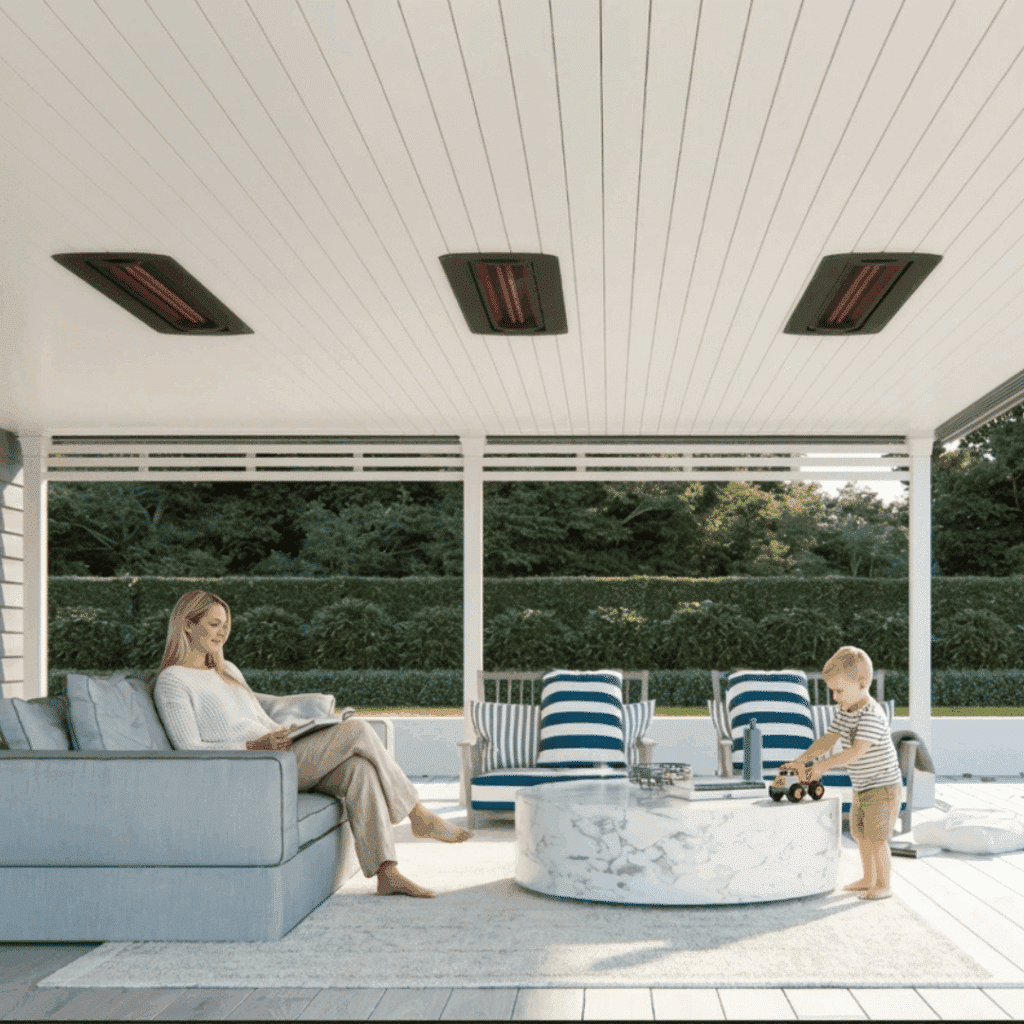 "Our guest have been wowed by the entertainment space and impressed with the heaters. They are not obvious as the white glass helps to disguise them within the space!" - James P.