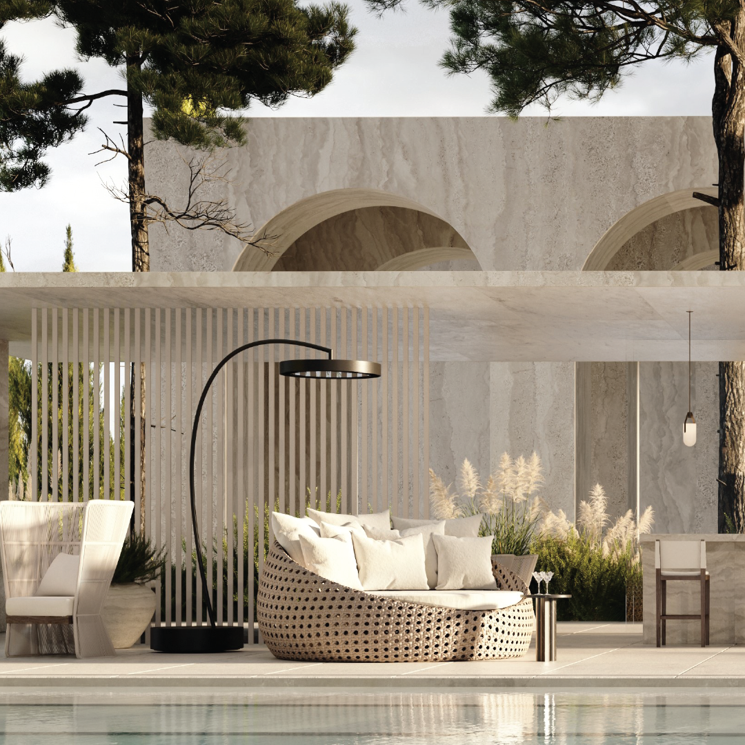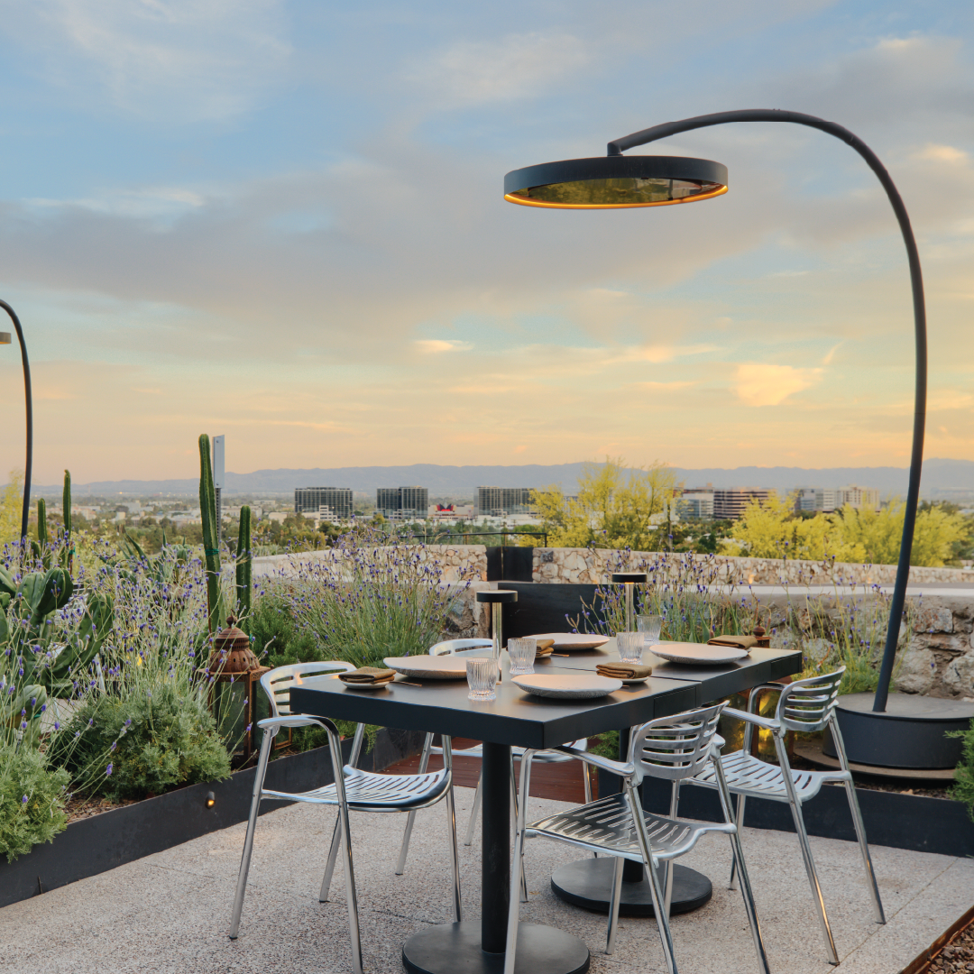 Contemporary Design: This free-standing heater features a sleek pendant design and a stable weighted base, allowing for versatile placement options to enhance the ambiance of luxurious outdoor areas.