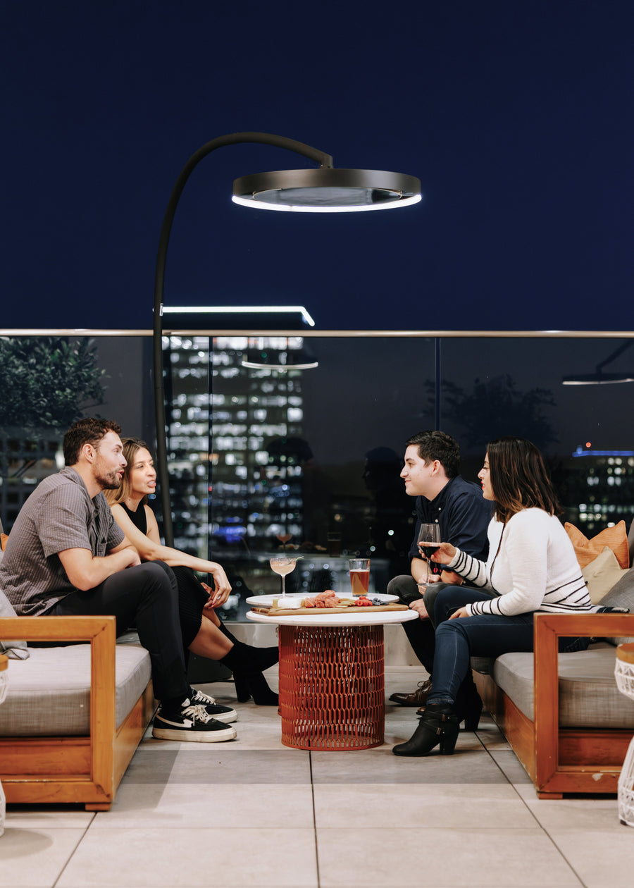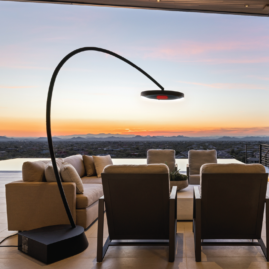 The freestanding, Eclipse is a powerful electric outdoor heater that brings radiant warmth, light and style to design-focused outdoor spaces. This freestanding electric outdoor heater incorporates ground-breaking heat transfer technologies that result in a high-efficiency outdoor heater and dimmable LED light unit with minimalist, yet striking design aesthetics.